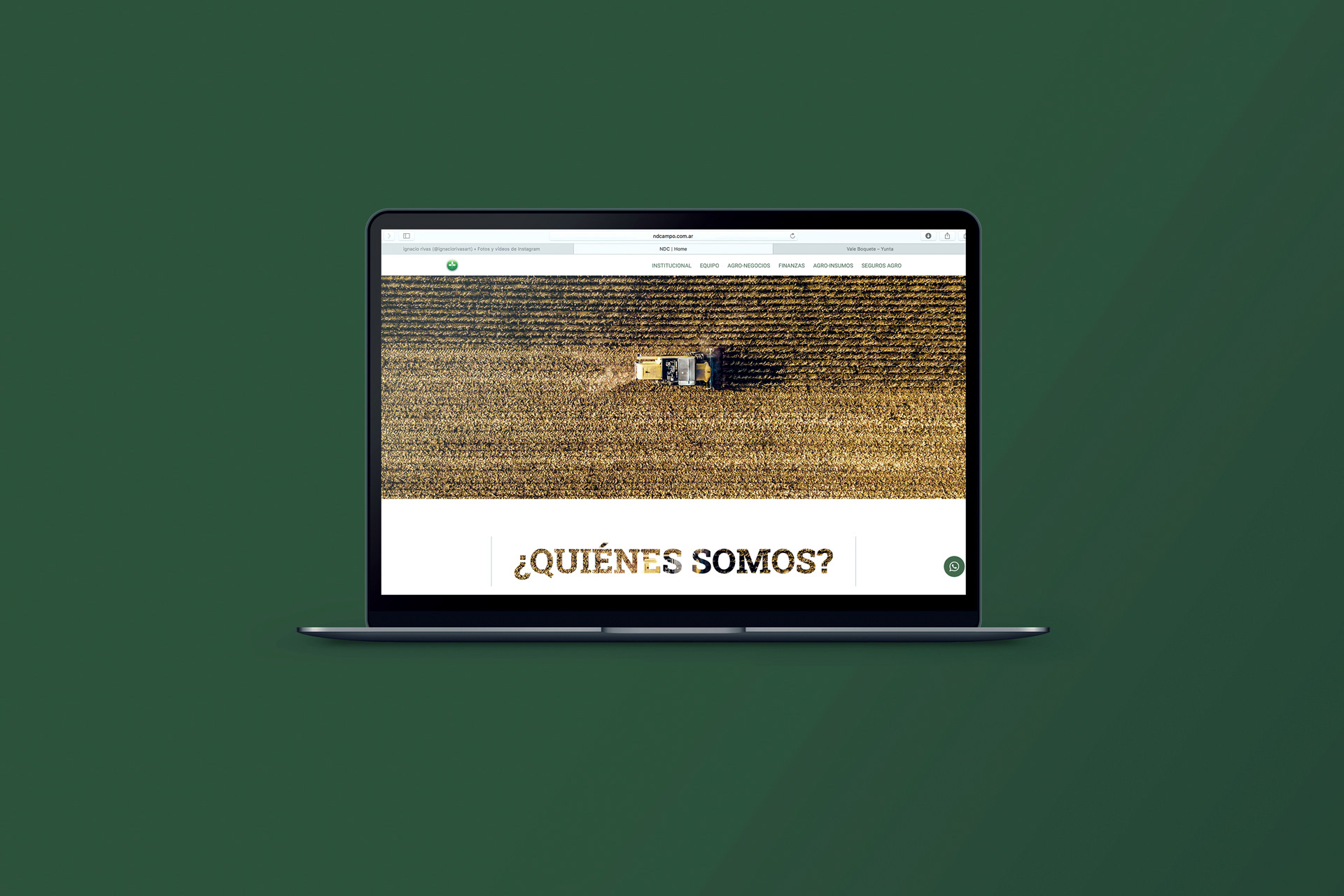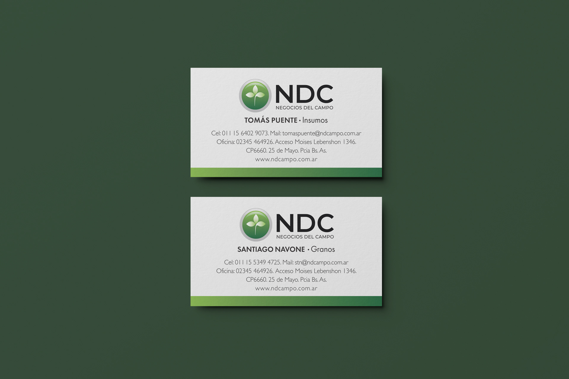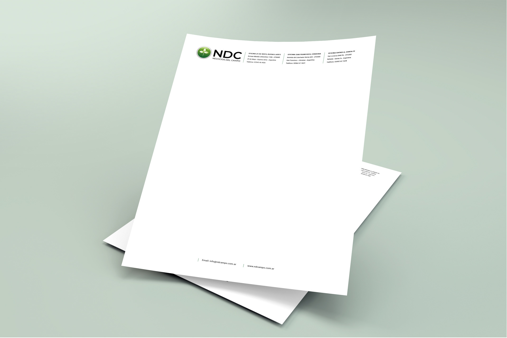Diseñamos el branding para NDC, hoja membreteada, tarjetas personales, firma emails, y sitio web. NDC es una empresa con experiencia en la cadena comercial de granos y venta de insumos para el campo argentino.